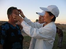 次日上午,李筱荣副院长在集宁市卫生学校附属医院为当地12位白内障患者实施手术治疗。王锐副书记则带队前往距集宁市100公里外的四王柱村,为当地农牧民进行巡回医疗。这里的村